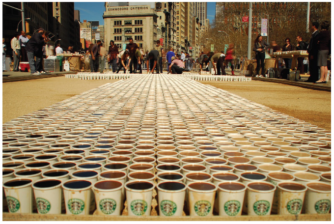 Starbucks green project for Earth day to get people use mugs over paper cups when they buy coffee.